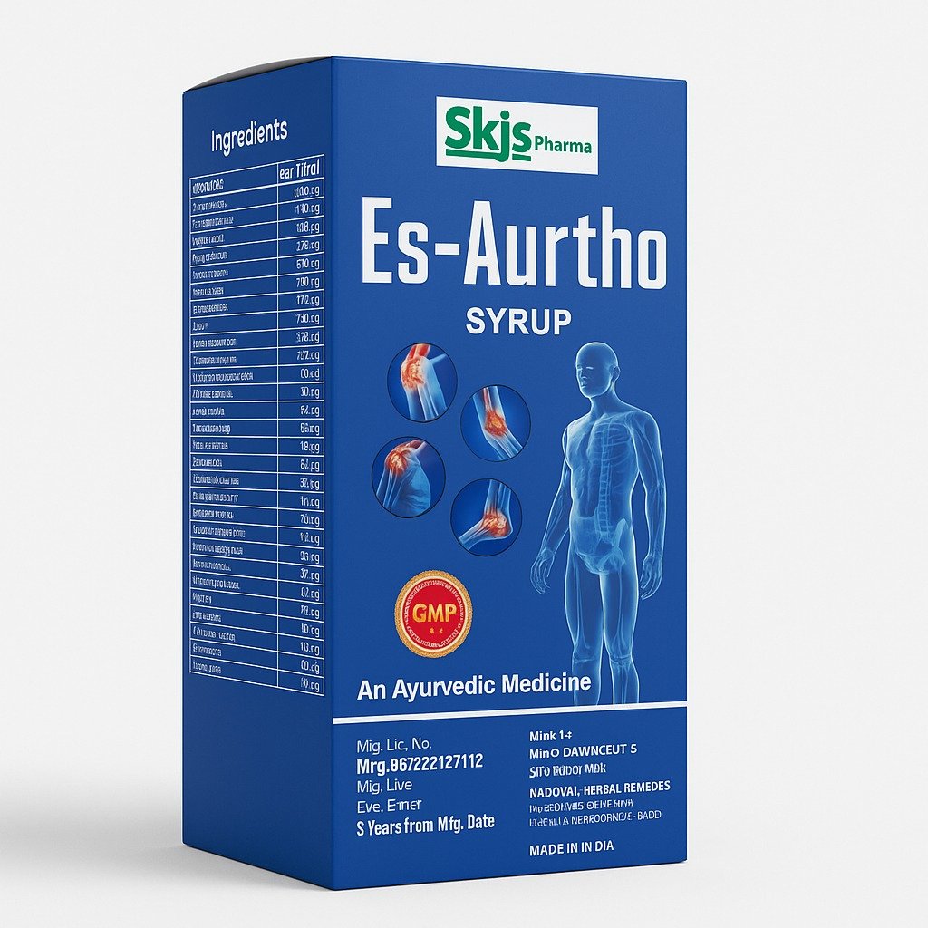 Es-Aurtho Syrup is a powerful Ayurvedic formulation specially designed to provide relief from joint pain, stiffness, swelling, and muscular discomfort.